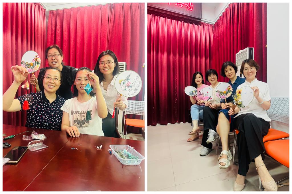 随后开展DIY团扇和香包活动,团扇制作时,老师们通过亲手挑选材料、绘制图案、粘贴装饰等步骤,制作出一把把精美的团扇。团扇不仅是夏季纳凉的实用工具,更是传统文化的载体。在制作过程中,大家深入了解了团扇的历史背景、制作工艺和文化内涵,感受到了传统文化的独特魅力。除了团扇制作外,香包DIY也备受青睐。香包是端午节的重要习俗之一,具有驱蚊辟邪、祈求平安的寓意。在DIY过程中,大家根据自己的喜好和创意,选择了不同颜色样式的布料,制作出各具特色的香包。这些香包不仅美观实用,更承载着大家对传统文化的敬意和对美好生活的祝愿。