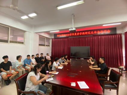 于2024年7月12日下午,在学院会议室成功举办了夏季学期研究生工作及安全教育座谈会。此次会议由学院执行院长方莉俐主持,党总支书记张海斌、学术副院长王建军以及全体研究生和研究生导师参加。
