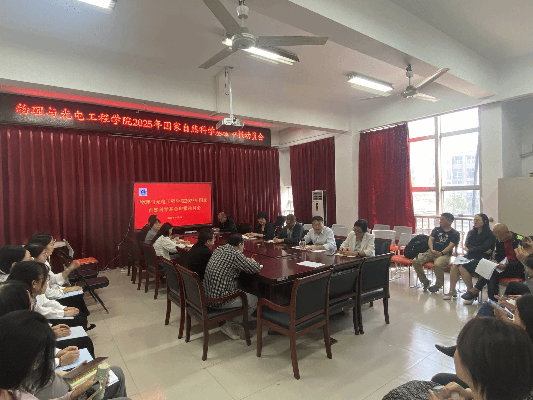 在2号实验楼学院会议室召开了2025年度国家自然科学基金项目申报动员大会。此次大会旨在进一步激发学院教师的科研热情,提升基金申报的积极性和成功率,为学院乃至学校的科研发展贡献力量。班子成员和全体教师参加了此次会议,会议由学院学术副院长王建军主持。