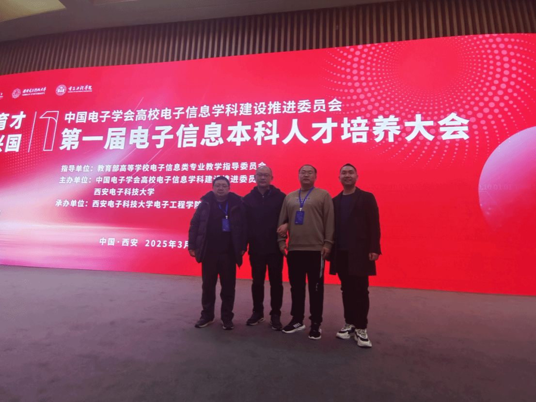 2025年3月14日-16日由中国电子学会高校电子信息学科建设推进委员会与西安电子科技大学联合主办的第一届电子信息本科人才培养大会在西安召开。学院副院长郭鹏、学术副院长王建军带领相关专业负责老师靳文涛、李林、李梦参加了此次会议。