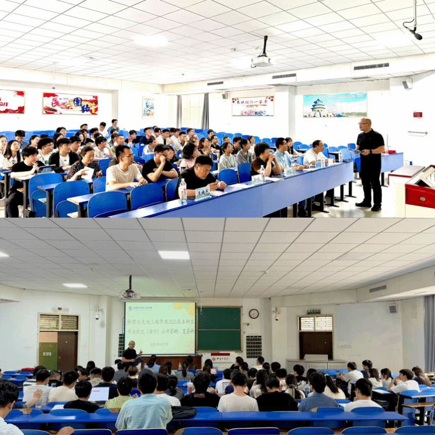 2025届本科生毕业论文(设计)公开答辩和复答辩在4号教学楼101室进行,其中7名学生参加本次公开答辩,2名学生参加复答辩。物电学院全体教师和2025届毕业生参与旁听,色情网站