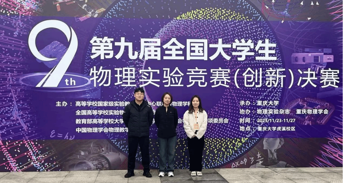 2023年11月24日,第九届全国大学生物理实验竞赛(创新)在重庆大学举办,共231所院校,1200多名师生参加决赛。由物理与光电工学院张莹(领队)、尹莉、孙静静、贺庆、靳文涛等老师指导的学生团队,在自选类、命题类和讲课类三个类别中获得佳绩,获得二等奖2项、三等奖2项及优秀奖1项。