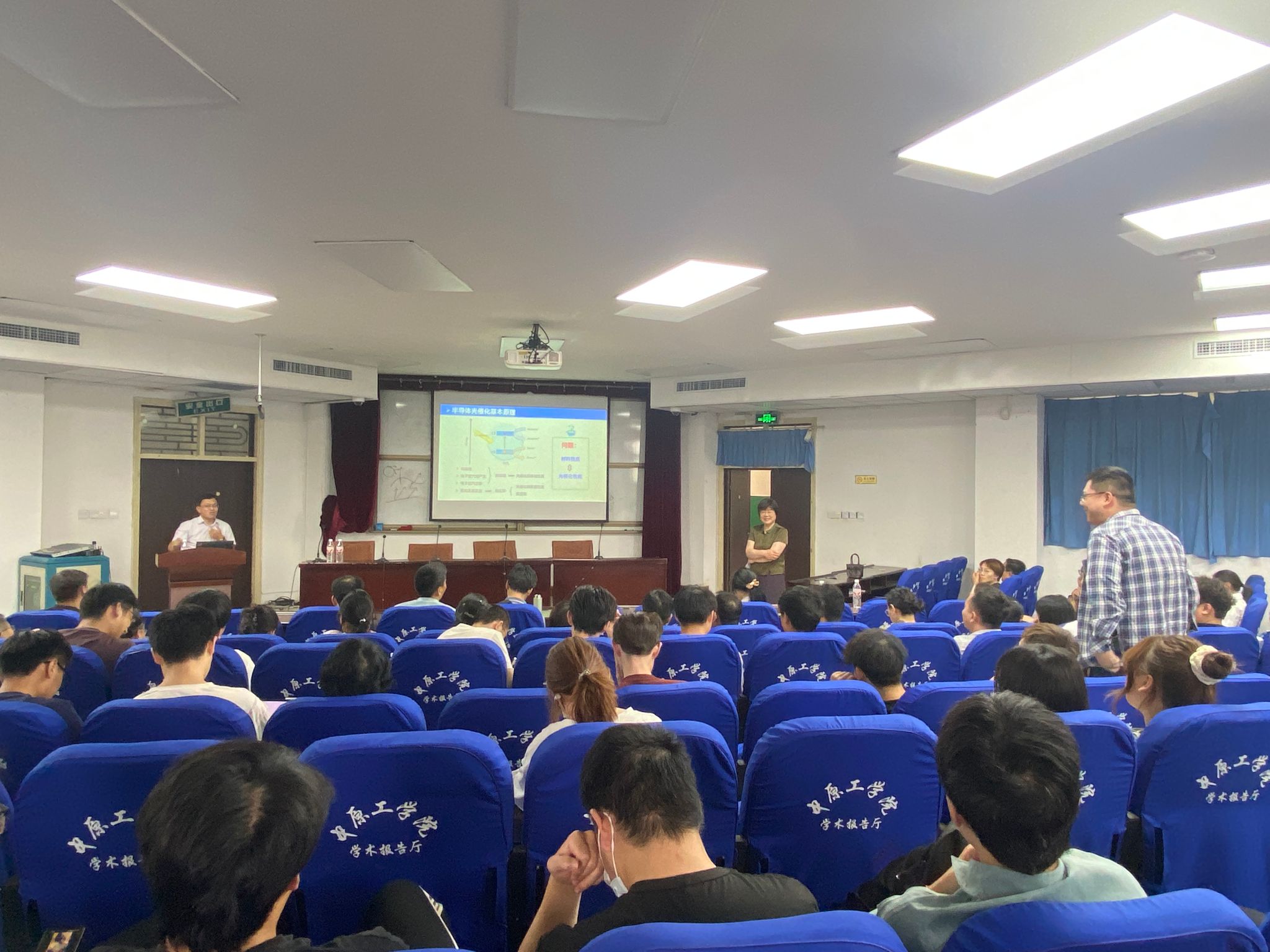 讲座中,李国强从可见光光催化材料的基本概念切入,运用生动有趣的例子,将晦涩的光催化理论变得通俗易懂,帮助在场师生轻松理解其中奥秘。李国强着重阐述了光催化领域的最新突破,通过详实的数据和案例,充分展示了光催化在解决能源问题上的显著优势,发展了非晶氧化物异质结构增强水氧化光催化性能的方法。为大家打开了一扇探索科学前沿的新窗口。此外,李国强还分享了自身科研过程中的经验感悟,他鼓励同学们在学术道路上勇于探索,始终保持对科学的好奇心与求知欲。