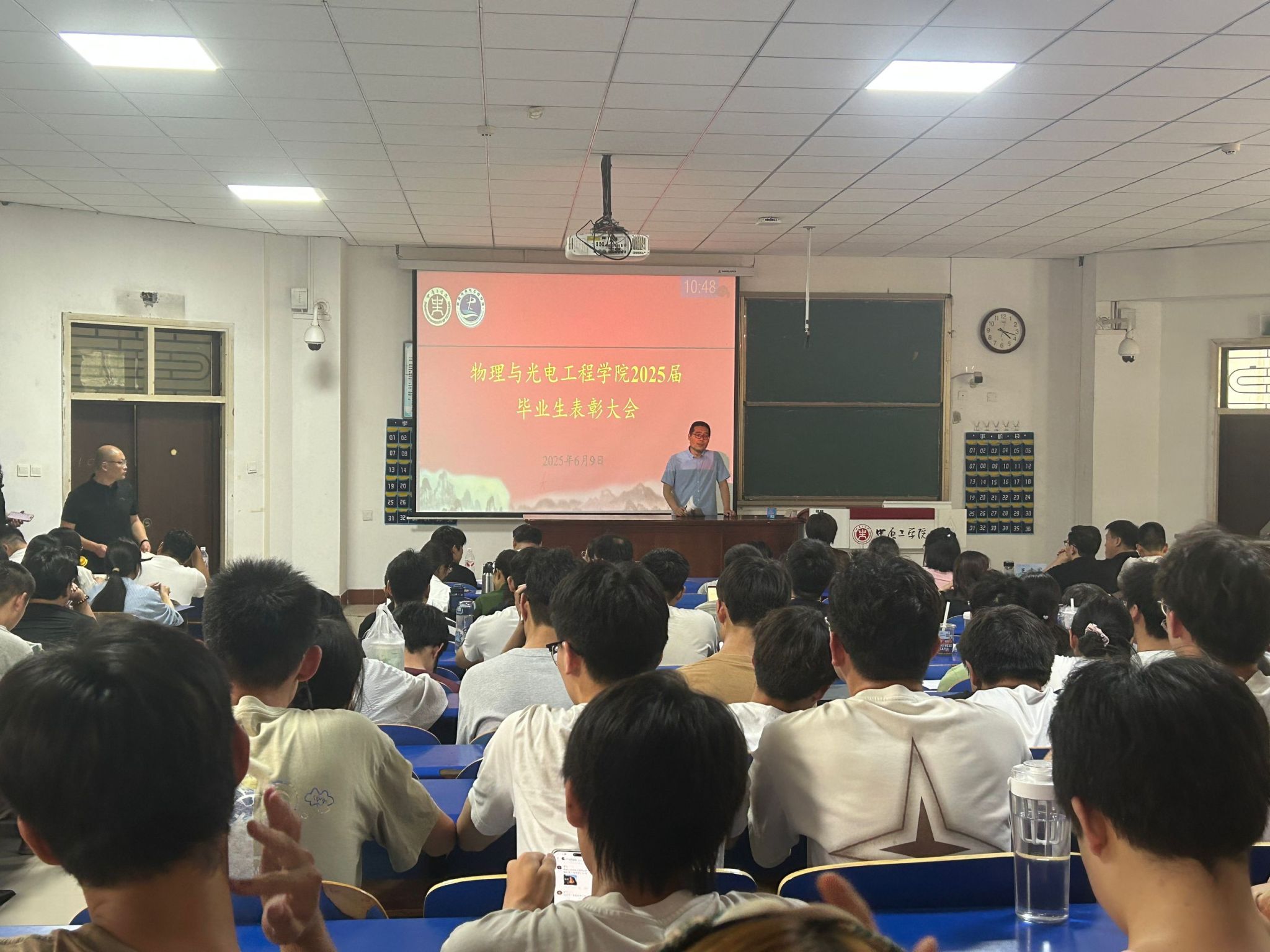 2025届毕业生升学就业表彰大会在四教101隆重举行。学院全体教职工、本科生及研究生齐聚一堂,表彰在考研深造与就业征程中表现卓越的优秀毕业生,激励全体同学奋发图强。会议由学院副书记刘自范主持。